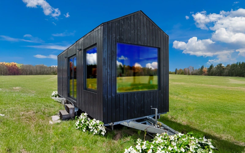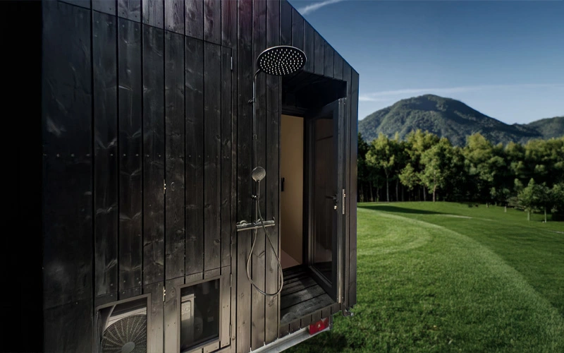 A Tiny House Braga é equipada com uma cozinha funcional, perfeita para preparar refeições, e uma casa de banho que atende às necessidades diárias dos seus hóspedes. Um dos grandes atrativos deste modelo são as janelas de grandes dimensões, que permitem a entrada generosa de luz natural, criando um ambiente arejado e convidativo. Além disso, este modelo geralmente vem equipado com uma salamandra que funciona a lenha, tornando o espaço ainda mais aconchegante e confortável.